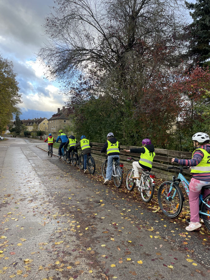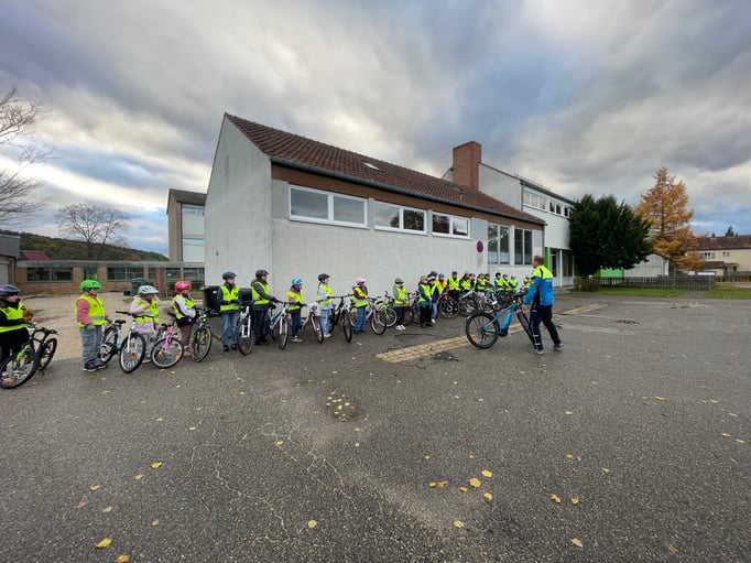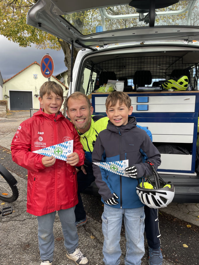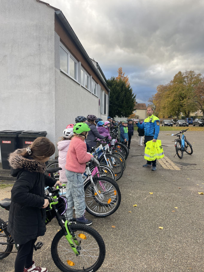 Zum Abschluss der Sequenz durften daher alle am 30. Oktober an der Realraumfahrt durch Lichtenau teilnehmen. Bevor es losging, kontrollierten die Polizisten die Fahrräder auf Verkehrssicherheit.