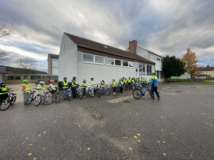 Am 23. Oktober war es dann soweit, die praktische Prüfung stand an, nachdem zuvor alle den Theorietest bestanden hatten. Die Aufregung war groß. Die Kinder mussten zunächst in einer Gruppenfahrt